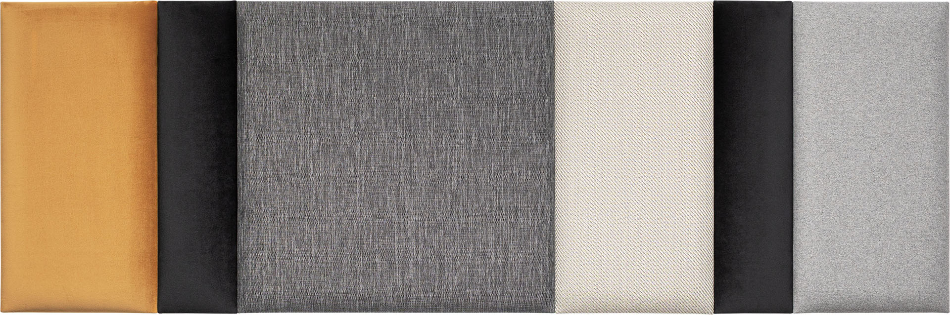 Duży set Regular, złożony z 6 paneli tapicerowanych Soform w szaro-musztardowych odcieniach. Gotowy zestaw pozwoli ożywić wystrój salonu, nadać przytulność sypialni czy nieco wygłuszyć miejsce do pracy.